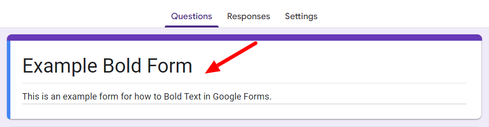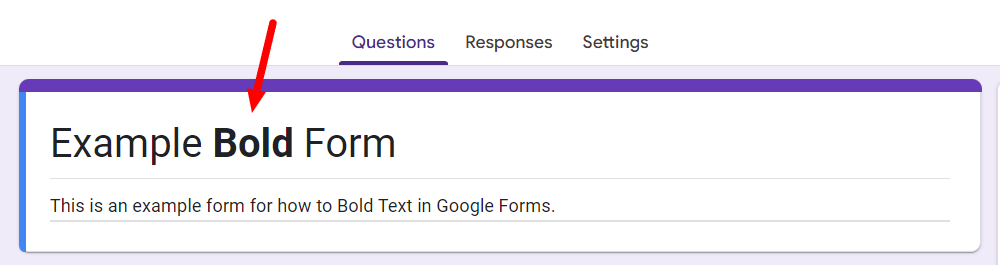 As mentioned earlier, the bold formatting option can be used on the text of your Google Form’s title, description, and questions.
