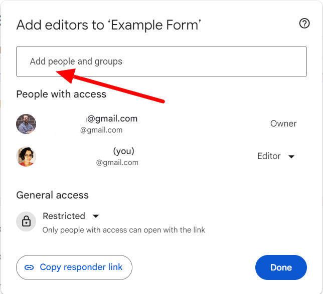 Option 1: Add collaborators to Google Forms or Google Sheets